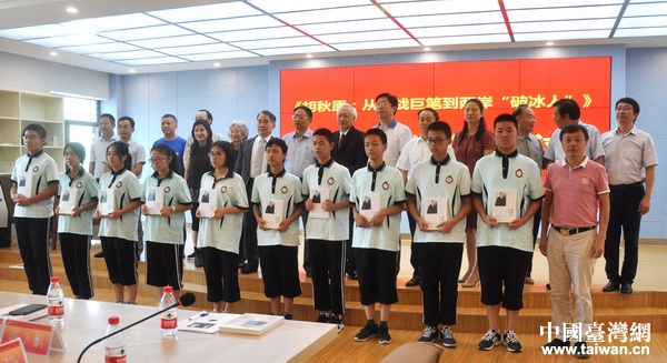海內外專家學者向黃陂一中學子贈《胡秋原》。(圖片來源:武漢市臺辦)