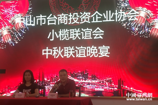 中山市公安局審批辦常務副主任魏健怡(中)、治安管理支隊戶政大隊副大隊長溫燕嵩(右)為中山市臺商投資企業協會理監事宣講居住證申辦流程。(圖片來源:廣東省臺辦)