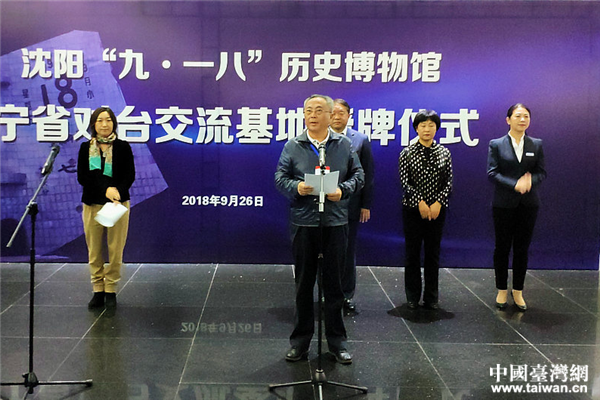 中國臺灣網9月29日沈陽訊 9月26日,沈陽“九·一八”歷史博物館“遼寧省對臺交流基地”授牌儀式在博物館序廳隆重舉行。遼寧省臺辦副巡視員馬戈、沈陽市臺辦主任王羽輕、沈陽市文廣局副局長宋振虹、“九·一八”歷史博物館館長范麗紅及遼寧伊利乳業有限責任公司、沈陽外事服務學校學生代表近200人參加授牌儀式。儀式由沈陽市臺辦副主任王莉主持。