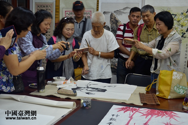 刻刀下栩栩如生的小羊、96歲老人筆下活靈活現的蝦趣圖、富貴的牡丹、高潔的紅竹,一件件作品帶著河東人的盛情贈送給臺灣同胞。