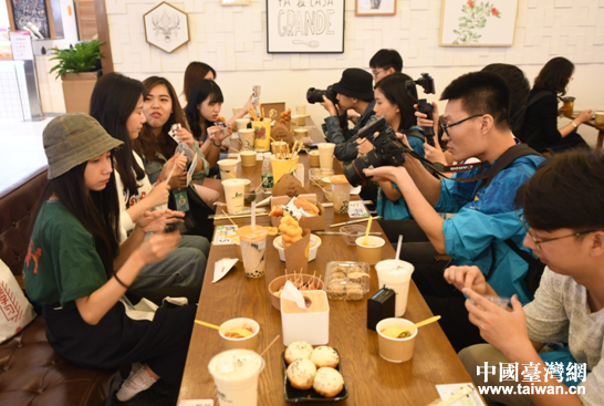 采訪團在群光廣場享受臺灣美食與成都名小吃。(圖片來源:四川省臺辦)