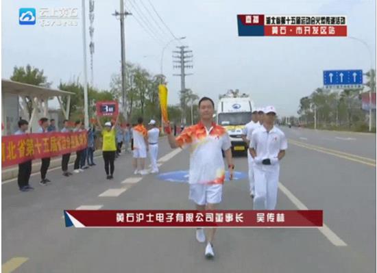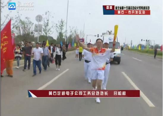 黃石滬士電子有限公司董事長吳傳林火炬?zhèn)鬟f。(圖片來自網(wǎng)絡視頻截圖)