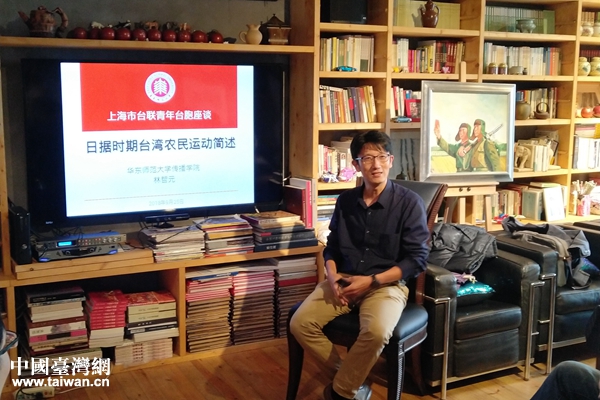 中國臺灣網10月15日威海訊 在滬青年臺胞讀書會于10月13日,在位于上海青浦區朱家角鎮的“薄荷香”書苑閱讀體驗館舉行第11次集體學習。活動邀請華東師范大學亞洲馬克思主義研究所副教授、臺籍教師林哲元介紹日據時期臺灣農民運動情況。兩岸同胞共同追尋這一段對臺灣近現代社會發展和祖國統一運動形成重要影響的風云歲月。(中國臺灣網、上海市臺聯文化宣傳部聯合報道)