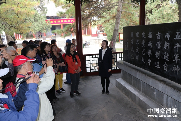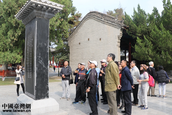 中國臺灣網(wǎng)10月18日西安訊 (記者 郜利敏)“公元一九四五年,日本帝國主義戰(zhàn)敗投降,臺灣光復(fù),回歸祖國。次年,臺灣全島士紳代表組成臺灣光復(fù)致敬團,先至南京,又飛西安,擬前往黃陵,告祭軒轅始祖……并祝愿祖國早日和平統(tǒng)一,我族繁衍昌盛,以彰祖德。”在黃帝陵,臺北市臺澎金馬各縣市同鄉(xiāng)會總干事聯(lián)誼會參訪團一行誦讀“臺灣光復(fù)致敬團”祭黃帝陵文石碑碑文,深思歷史、追思“人文始祖”。