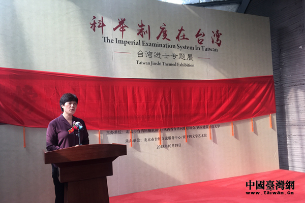 北京市臺聯(lián)副會長王慧出席了開幕式并致辭。他表示,自2013年起,北京市臺聯(lián)在兩岸開始進行巡展,先后在臺灣各大高校,重慶、廈門等地舉行展覽,得到了兩岸專家學(xué)者的重視和肯定,在兩岸民眾尤其是青年學(xué)子中產(chǎn)生了強烈反響、獲得了廣泛好評,在促進兩岸文化交流、增進文化認同方面發(fā)揮了積極作用。他說,北京市臺聯(lián)把臺北市臺澎金馬各縣市同鄉(xiāng)會總干事聯(lián)誼會和“科舉制度在臺灣”文化交流活動兩項品牌交流活動帶到陜西,擴大和深化兩岸交流合作。他表示,北京市臺灣今后還將利用各種有效載體開拓交流新途徑,推出更多有特色的交流項目。