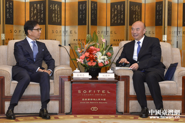 陜西省省長劉國中會(huì)見富邦集團(tuán)董事長蔡明忠。(圖片來源:陜西省臺(tái)辦)