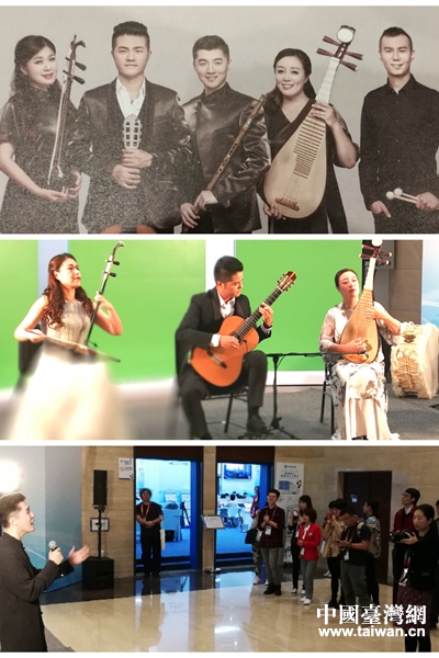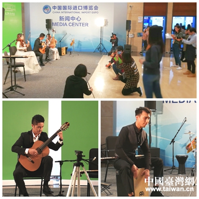 進博會新聞中心正在上演音樂演奏節(jié)目。(圖片來源:上海市臺辦)