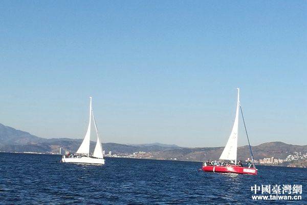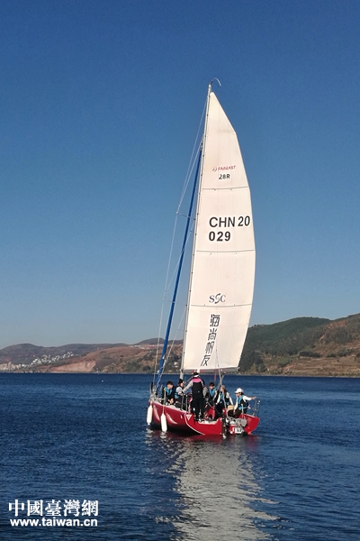 中國(guó)臺(tái)灣網(wǎng)11月26日玉溪訊 一湖如鏡,琉璃萬(wàn)傾。近日,來(lái)滇參加“滇臺(tái)青年自行車(chē)環(huán)滇池體驗(yàn)營(yíng)”交流團(tuán)的臺(tái)灣中華大學(xué)師生一行32人來(lái)到地處高原、遠(yuǎn)離大海的云南省玉溪市澄江縣撫仙湖帆船基地,激情體驗(yàn)帆船駕駛樂(lè)趣,實(shí)地感受“高原明珠”撫仙湖的獨(dú)特魅力。