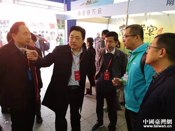 浙江省臺辦主任莊躍成實地了解臺灣參展商銷售情況。(圖片來源:浙江臺辦)