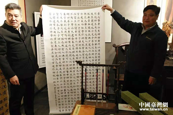 韋仰哲先生來薛參訪時(shí),考察了種莊村鄉(xiāng)村記憶館,看到國學(xué)教室里書法教具,感到非常親切,就萌發(fā)了一個(gè)非常溫暖有愛的想法:教棗莊的農(nóng)村孩子寫書法,以兩岸人民共同的文化靈魂載體——漢字為橋梁,在美麗的鄉(xiāng)村,開展海峽兩岸青少年文化教育交流活動(dòng)。韋仰哲先生向臺(tái)辦工作人員表達(dá)了想法后,棗莊市、區(qū)臺(tái)辦高度重視,靠上服務(wù),在種莊村成立了 “海峽兩岸書法傳承”工作室。韋先生書寫了《師說》和《朱子家訓(xùn)》贈(zèng)送給了工作室,棗莊市臺(tái)辦副主任高博親自將韋先生的作品授予了種莊村黨支部書記。工作室成立以來,棗莊市關(guān)工委主任高惠民,薛城區(qū)委書記姜山等領(lǐng)導(dǎo)同志先后到工作室視察指導(dǎo)工作,給予了高度評(píng)價(jià)。(中國臺(tái)灣網(wǎng)棗莊市薛城區(qū)臺(tái)辦通訊員 呂海濤)