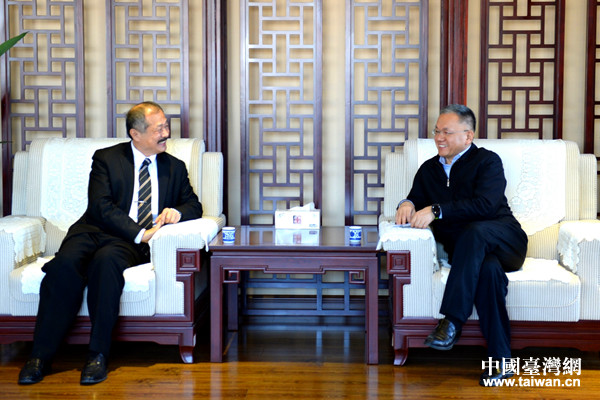 河北省臺辦主任王立杰會見全國臺企聯(lián)常務(wù)副會長林易陞一行。(圖片來源:河北省臺辦)