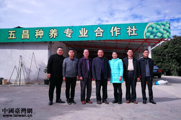 市委臺辦主任王忠豪(左四)到豐順縣臺資企業五昌高新農業發展有限公司調研。(圖片來源:梅州市委臺辦)