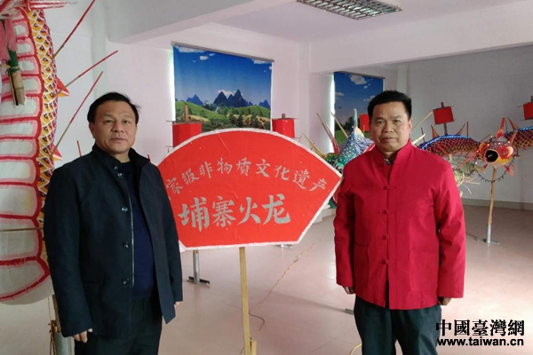 調研期間,調研組一行還到豐順縣埔寨鎮國家級非物質文化遺產——舞龍·埔寨火龍展廳參觀考察,與縣宣傳部、縣委臺辦、縣文廣新局等部門負責同志及舞龍傳承人對接,認真商討有關臺灣苗栗市公所邀請豐順縣政府于2019年2月份組團赴臺表演傳統“燒火龍”節目相關籌備事宜。據了解,“豐順埔寨火龍”是廣東梅州的傳統民俗文化活動,由燒火樹(燒煙架)、燒禹門(鯉魚跳龍門)、燒火龍三項組成,至今有300年歷史。“埔寨火龍”由鐵絲、竹料、紙等扎成,繪上鱗、角、爪,龍首至龍尾長達數十米。在龍身上安裝煙花、炮竹、火箭多達數千枚,龍頭、龍尾裝的火藥更數不勝數。一條火龍由三四十個赤膊青年手擎,加上鼓樂手、龍蝦、金魚等人,整個隊伍可達200多人。(中國臺灣網梅州市委臺辦通訊員 廖榮榮)