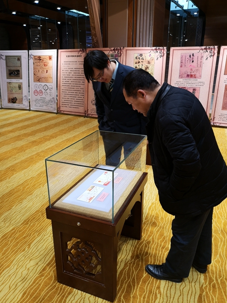 參觀者參觀海峽兩岸通郵歷史展覽。(中國臺灣網 郜利敏 攝)