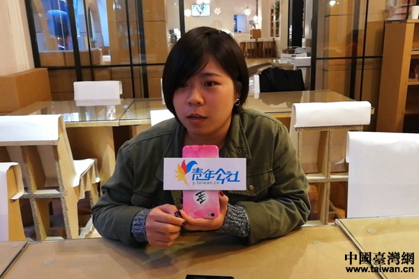 文創園內在手創聯盟就業的謝筱涓接受記者采訪。(中國臺灣網 趙蓉 攝)