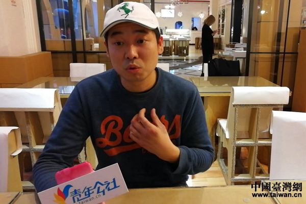 文創園內的創業者王子育在接受記者采訪。(中國臺灣網 趙蓉 攝)