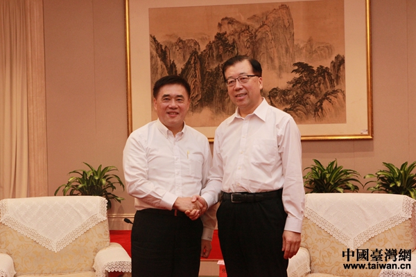 9月1日下午,山東省委常委、青島市委書記張江汀在八大關小禮堂會見了中國國民黨副主席郝龍斌一行。(圖片來源:青島市臺辦)