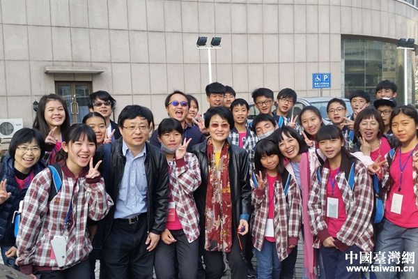 4月22日,青島市臺辦主任方妍與參加“第二屆海峽兩岸中學生海洋文化體驗式交流”活動的臺東縣池上中學師生參訪團一行合影。(圖片來源:青島市臺辦)