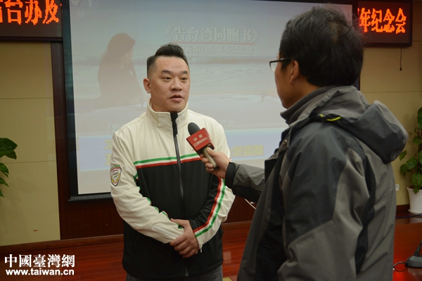 南昌市臺胞臺屬聯(lián)誼會理事長章躍進接受媒體采訪。(圖片來源:江西省臺辦秘書處)