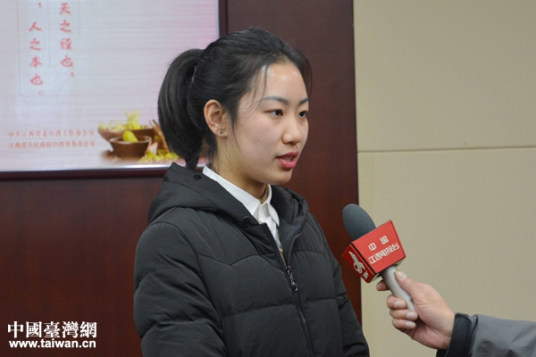 江西財大臺籍學(xué)生欒雨佳接受采訪。(圖片來源:江西省臺辦秘書處)