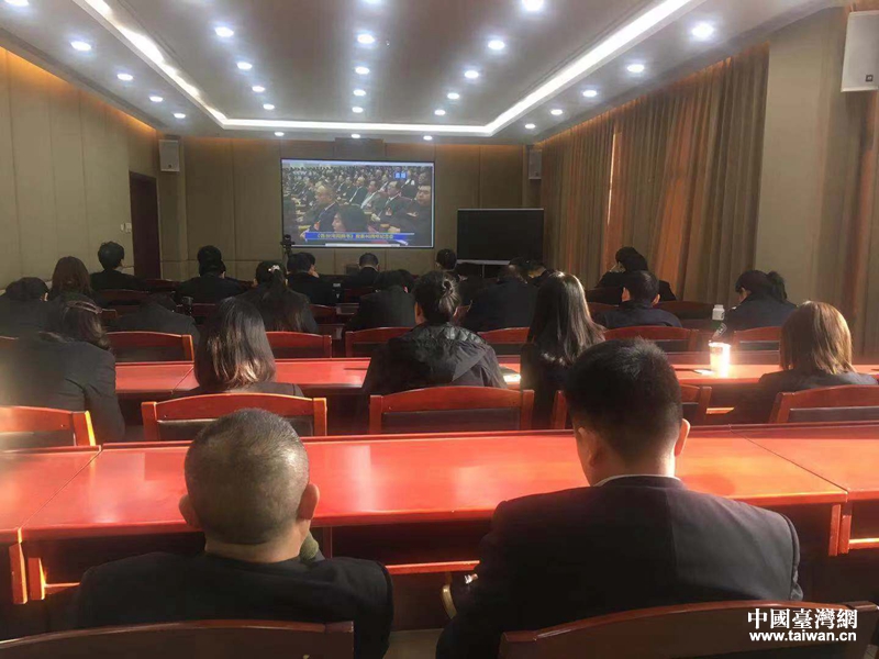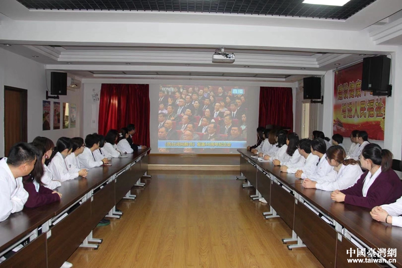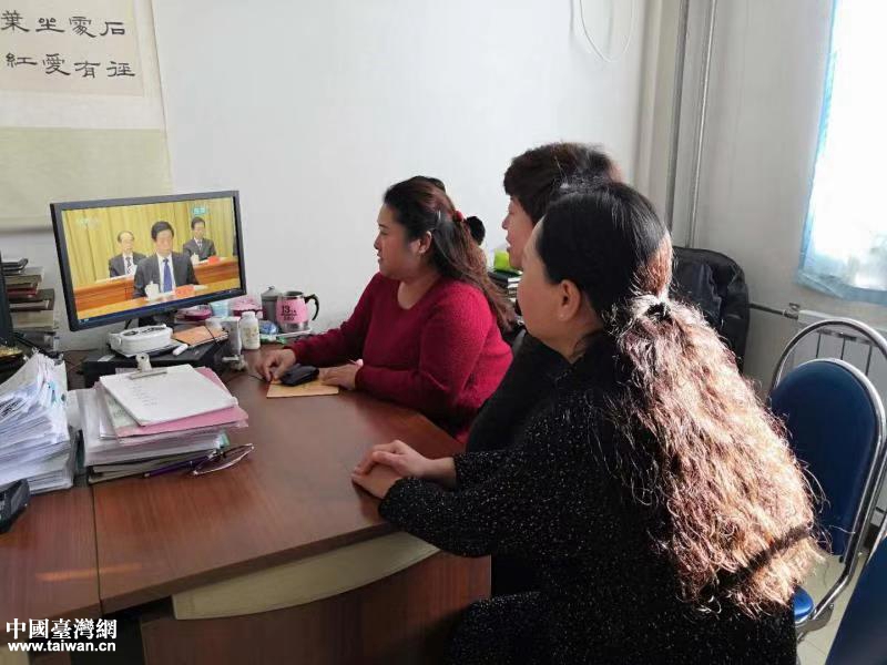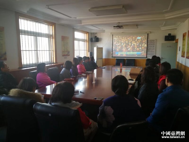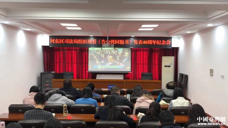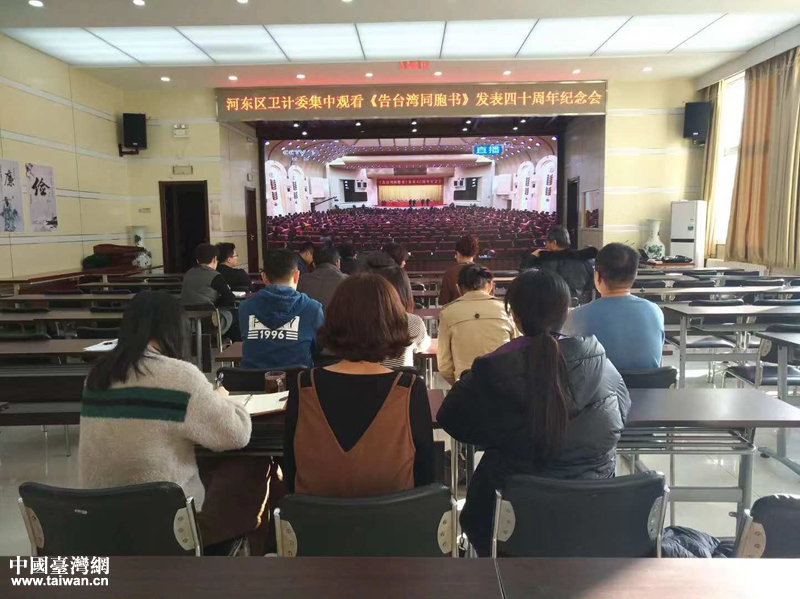 天津市河東區各界集中收看《告臺灣同胞書》發表四十周年紀念會。(圖片來源:天津市臺辦)