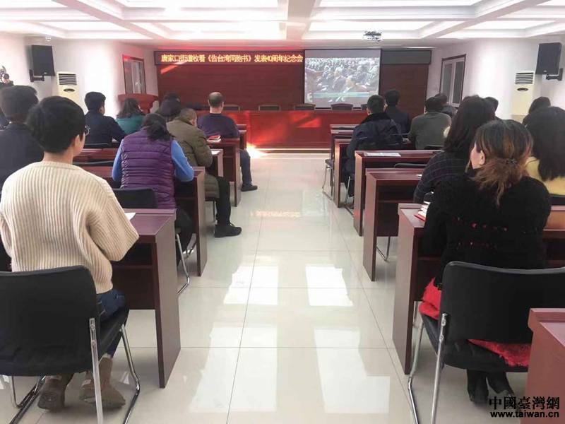 中國臺灣網1月15日天津訊 1月2日上午十時,天津市河東區各機關、街道社區、各民主黨派及工青婦等群眾團體,積極收看《告臺灣同胞書》發表四十周年紀念會,認真聆聽習近平總書記的重要講話,反響強烈。