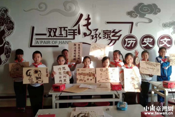 漢沽中心小學烙畫社團的百余位同學們在葫蘆、刻板上創作作品。(圖片來源:天津市臺辦)