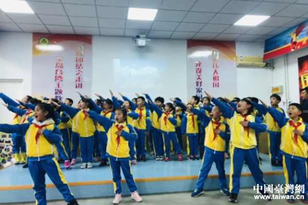 大港花園里小學的500名師生,舉辦了大型的文藝展演,載歌載舞。(圖片來源:天津市臺辦)