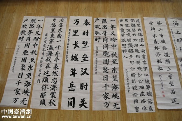 塘沽中心莊小學——翰墨傳情向海峽。活動現場,塘沽中心莊小學200名書法小選手現場競技,“一年又盼中秋至,東望海峽無限思,骨肉同胞團聚日,千家萬戶歡歌時”,用筆墨向海峽傳遞著濃濃的情懷,表達著寄托與希望。
