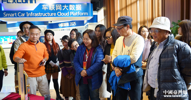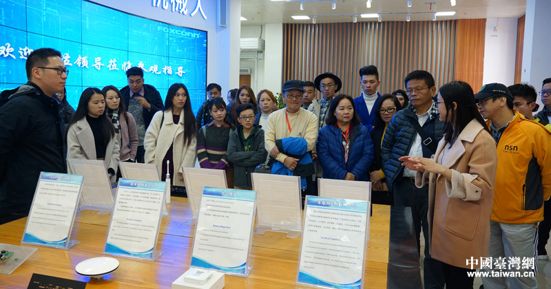 富士康南寧科技園工作人員向臺(tái)灣嘉賓介紹開發(fā)的智能產(chǎn)品。(圖片來(lái)源:廣西南寧市臺(tái)辦)