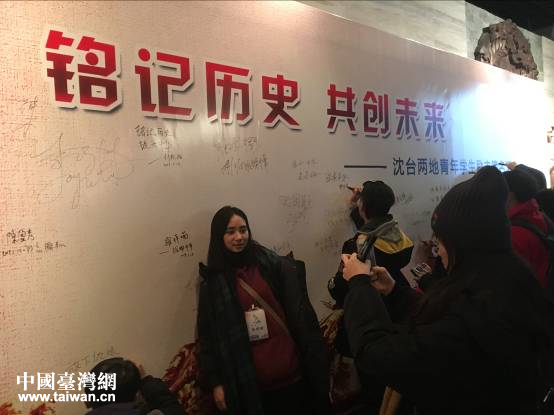 在剛剛獲批為遼寧省對臺交流基地的“九·一八”歷史博物館,同學們看到了上百幅真實的歷史照片及慘無人道的刑罰工具,通過講解員的敘述了解中華民族浴血奮戰、不屈不撓的抗戰史,引起了臺灣青年們強烈的共鳴。在隨后的沈臺兩地青年學生勵志簽名活動中,在場的兩岸大學生紛紛在印有“銘記歷史,共創未來”的長卷上留下“懷一顆心,念我千古華夏人,勿忘國恥”“振興中華,共創和平”“期盼和平長存”等勵志簽名,表達共同心聲。