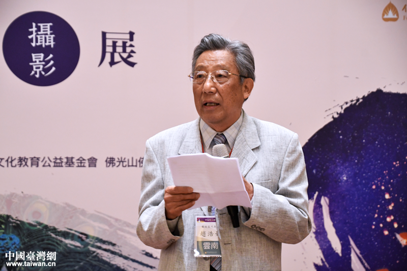 云南省著名書法家趙浩如在開幕式啟動儀式上致辭。(圖片來源:云南省臺辦宣傳處)