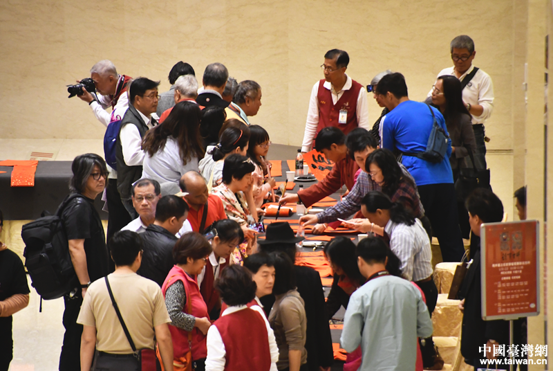 活動現(xiàn)場,兩岸書法家匯聚一堂,揮毫潑墨,書寫新春對聯(lián),吸引大批民眾圍觀索取。義工們不斷幫助民眾整理寫好的春聯(lián),毫不懈怠,拿到春聯(lián)的民眾滿心歡喜,不停向書法家和工作人員道謝。