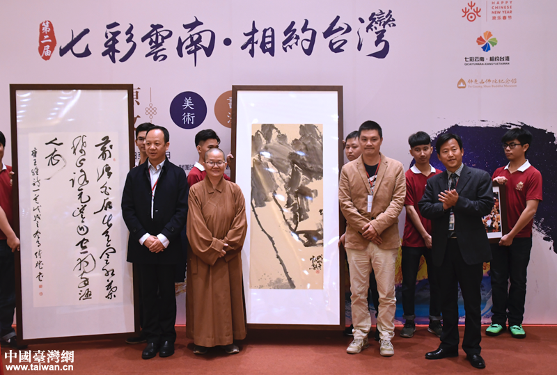 云南省文聯(lián)向臺灣佛光山佛陀紀念館贈送美術、書法、攝影作品。(圖片來源:云南省臺辦宣傳處)