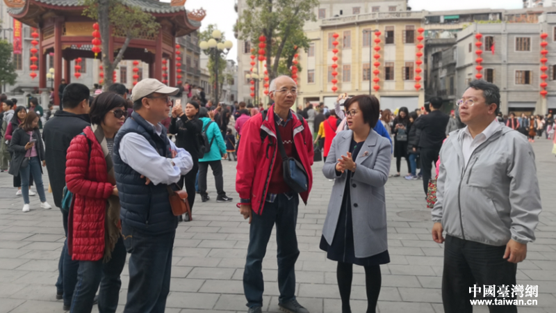 金平區委常委、統戰部部長丁丹霞(右2)向交流團介紹小公園開埠區保育活化情況。(圖片來源:汕頭市臺辦宣傳交流科)
