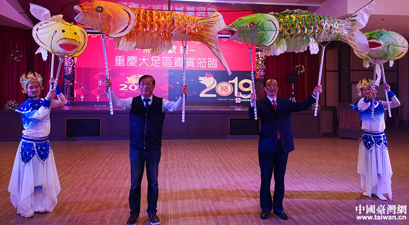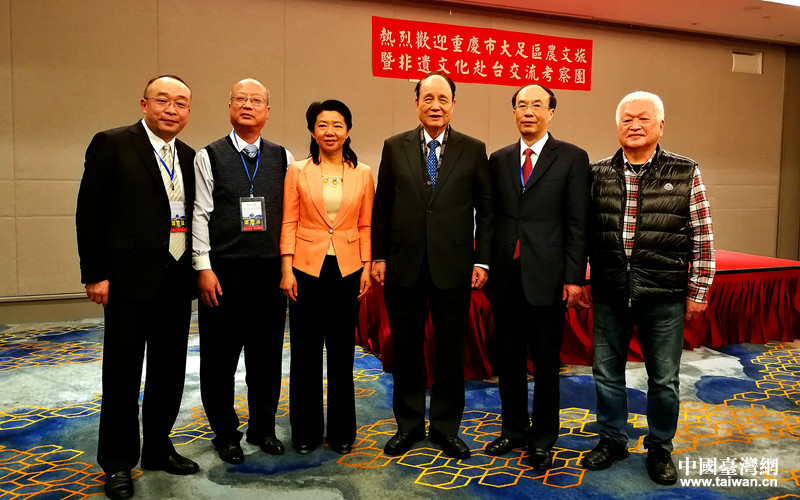 南投縣林明溱縣長(左二)熱烈歡迎大足非遺文化交流。(圖片來源:重慶市臺聯(lián))