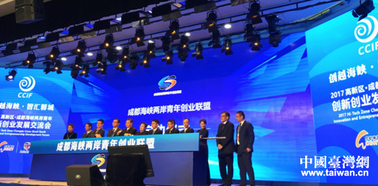 2017年10月成都海峽兩岸青年創業聯盟成立。(圖片來源:四川省臺辦)