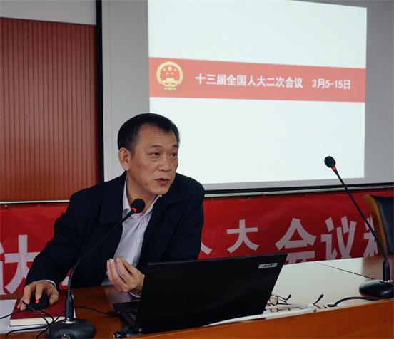 鄒振球從會議概況、對臺工作、人大臺灣代表團活動等方面,對全國“兩會”特別是十三屆全國人大二次會議情況作了詳細介紹。他結(jié)合參會經(jīng)歷,重點介紹了中共中央政治局常委、全國政協(xié)主席汪洋,國務(wù)委員、外交部部長王毅,中央臺辦、國務(wù)院臺辦主任劉結(jié)一參加臺灣代表團審議時的情況。他還生動地講述了自己在“兩會”期間接受媒體采訪,特別是鳳凰衛(wèi)視直播專訪時的情景。此外,關(guān)于嚴肅會紀、代表風采等會議花絮的介紹,也讓大家從多角度了解了“兩會”實況。鄒振球指出,這次全國“兩會”是在新中國成立70周年,在決勝全面建成小康社會、實現(xiàn)第一個百年奮斗目標的關(guān)鍵時期召開的一次十分重要的會議,大家要認真學習領(lǐng)會貫徹習近平總書記在全國“兩會”上的重要講話和全國“兩會”精神,切實把思想和行動統(tǒng)一到黨中央決策部署要求上來,為促進兩岸經(jīng)濟社會融合發(fā)展和兩岸關(guān)系和平發(fā)展作出應(yīng)有的貢獻。劉忠斌重點介紹了人大江蘇代表團的主要活動情況,以及該團學習習近平總書記參加內(nèi)蒙古、甘肅、河南代表團審議時重要講話精神的情況。