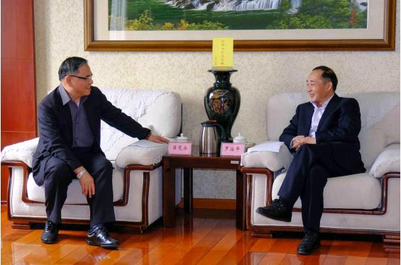26日,四川省臺辦主任羅治平在蓉會見了臺灣貿易中心成都代表處首席代表呂寬永一行。(圖片來源:四川省臺辦)