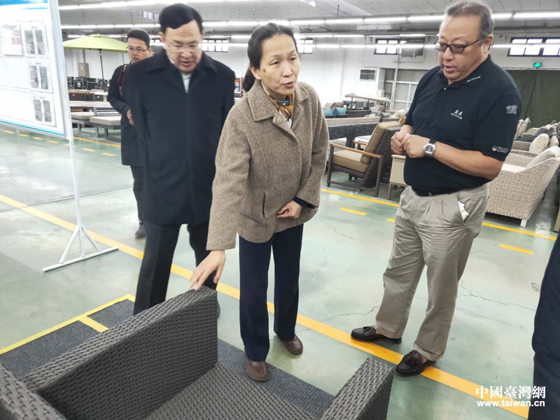 山東省臺(tái)港澳辦“三進(jìn)”活動(dòng)走進(jìn)青島萬匯家具有限公司。(圖片來源:山東省臺(tái)港澳辦)