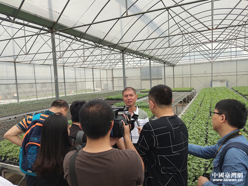 臺(tái)商張鎧礦實(shí)地向記者們介紹育苗和引進(jìn)臺(tái)灣技術(shù)情況。(圖片來(lái)源:福州市臺(tái)港澳辦)