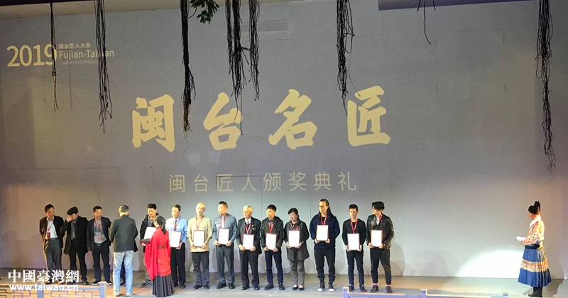 為閩臺(tái)匠人中的杰出代表頒發(fā)“閩臺(tái)名匠”等相關(guān)榮譽(yù)稱號(hào)證書(shū)。(圖片來(lái)源:福州市臺(tái)港澳辦)