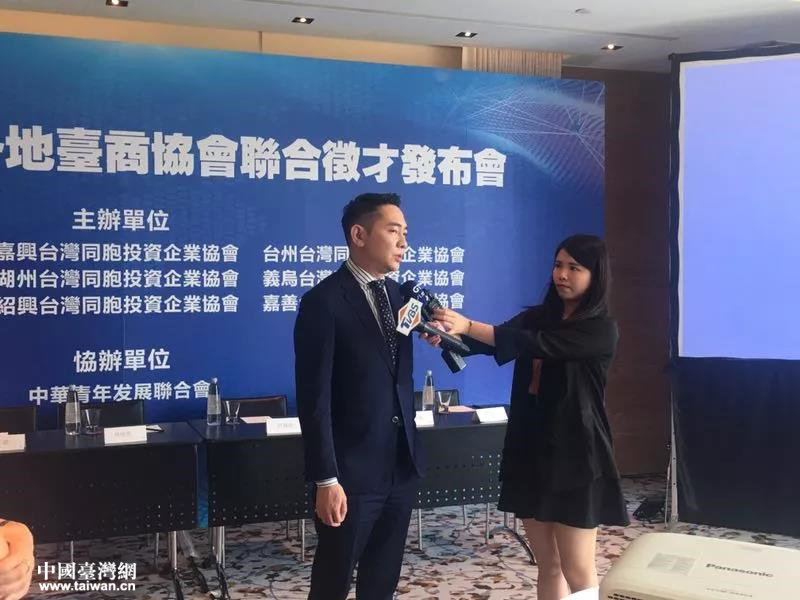 發(fā)布會主持人、敏實(shí)集團(tuán)員工接受采訪。(圖片來源:浙江省臺辦)