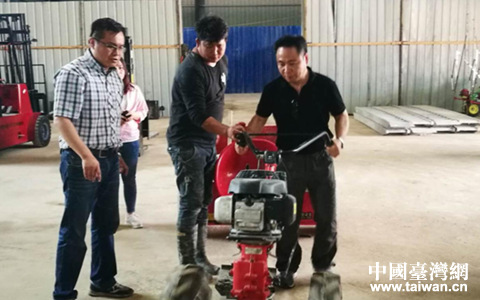 在貴州騰博有限公司體驗(yàn)農(nóng)機(jī)具操作。(圖片來源:貴州省臺辦)