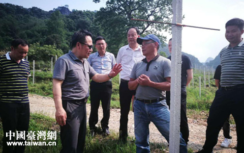 實(shí)地察看萬季豐農(nóng)業(yè)科技公司百香果種植園。(圖片來源:貴州省臺辦)