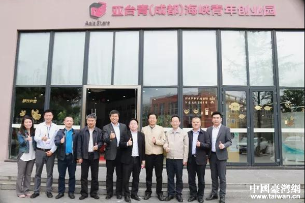 國臺辦經濟局副局長袁野(左五)一行調研亞臺青海峽青年創業園。(圖片來源:四川省臺辦)