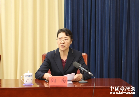 新疆維吾爾自治區黨委臺灣工作辦公室、自治區人民政府臺灣事務辦公室主任閻梅作對臺工作報告。(圖片來源:新疆臺辦)
