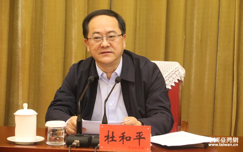 黑龍江省委常委、省委統(tǒng)戰(zhàn)部長(zhǎng)杜和平講話。(圖片來(lái)源:黑龍江省臺(tái)辦)