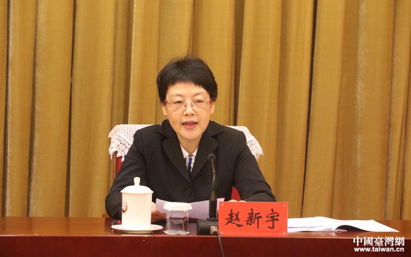 黑龍江省委統(tǒng)戰(zhàn)部常務(wù)副部長(zhǎng)高環(huán)主持會(huì)議。(圖片來(lái)源:黑龍江省臺(tái)辦)