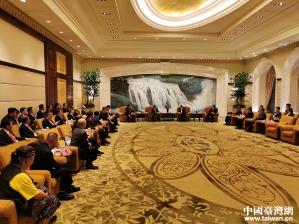 上海市委書記李強會見由郁慕明率領的臺灣各界人士代表團。(圖片來源:上海市臺辦)